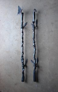 40″ long wrought iron pulls for Lightfoot & Wolfville Winery. Butterfly on left handle, bee a top right handle.